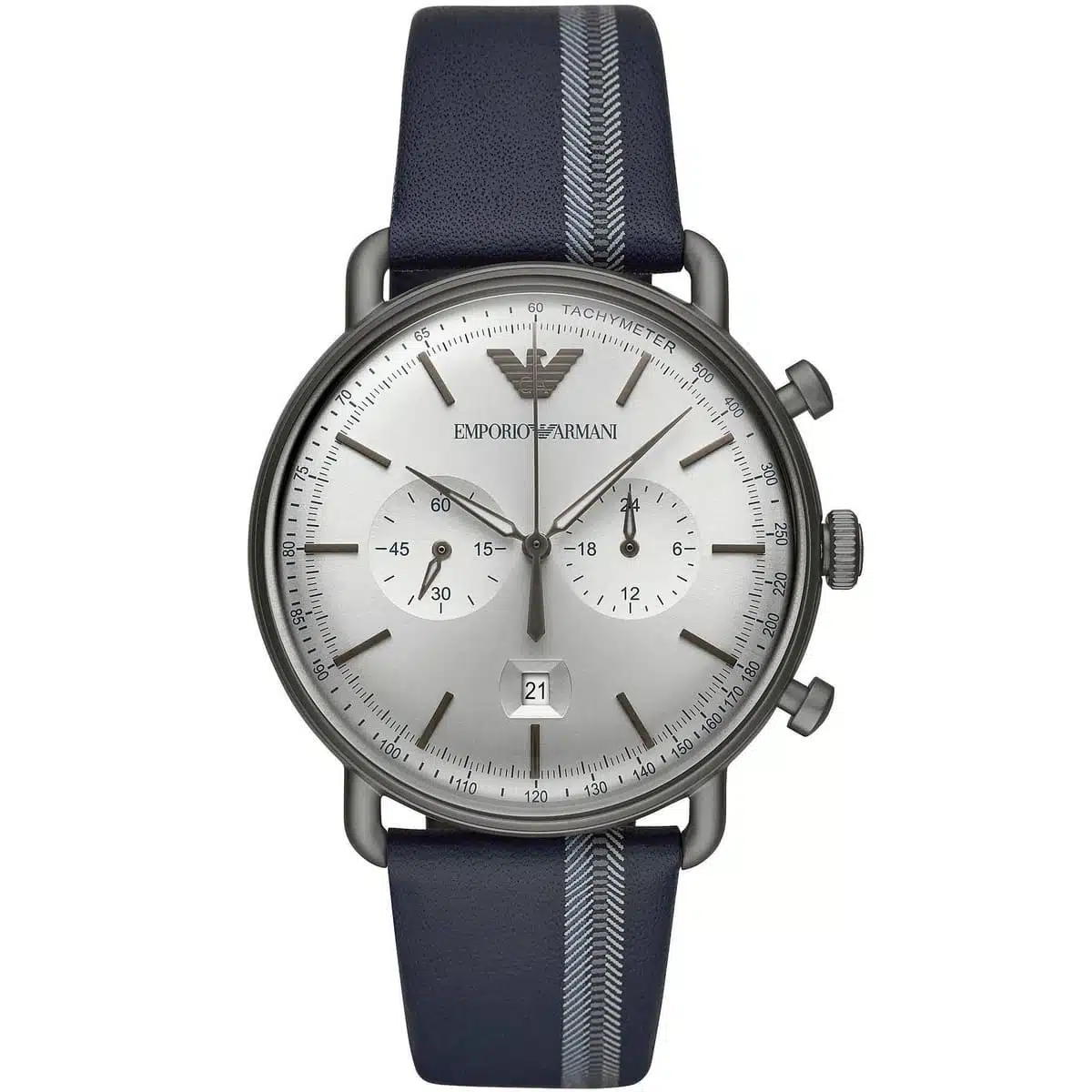 - Emporio Armani Men’s Chronograph Quartz Leather Strap Silver Dial 43mm Watch AR11202