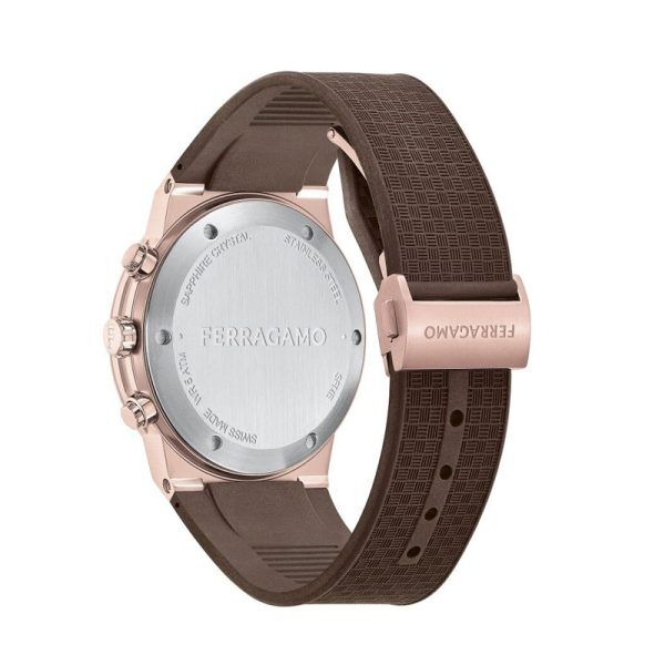 - Ferragamo Men’s Swiss Made Quartz Brown Silicone Strap Brown Dial 41mm Watch SFME01023