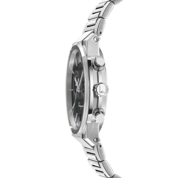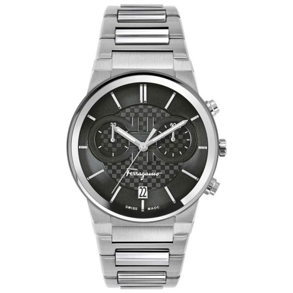• Ferragamo Men’s Swiss Made Quartz Silver Stainless Steel Black Dial 41mm Watch SFME00321