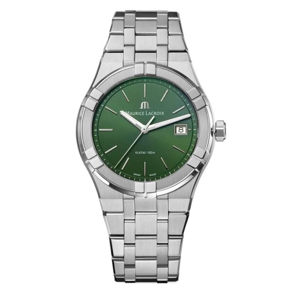 Maurice Lacroix Men’s Quartz Swiss Made Silver Stainless Steel Green Dial 40mm Watch AI1108-SS002-630-1